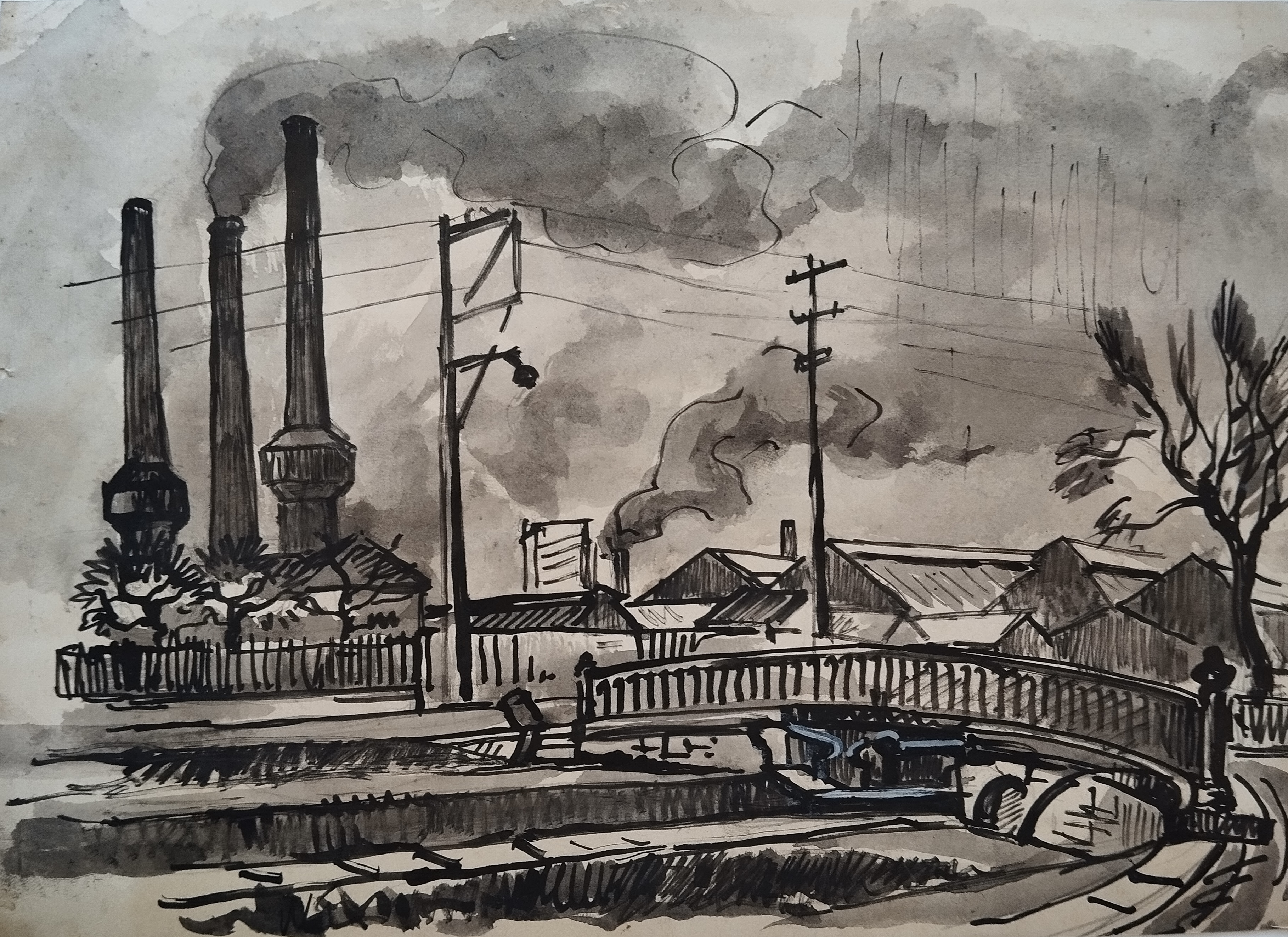 Artiste local passé par les Écoles des Beaux-Arts de Dijon et de Nancy et par l’École nationale des Beaux-Arts de Paris, exposé aux salons des artistes français dans les années 1930, Ernest Boguet (1902-1975) réalise ici une vue de Montbard. Le spectateur se situe à proximité de la gare, au bord du canal, dans un angle qui permet de visualiser les cheminées des usines de métallurgie qui font la renommée de la ville dès le début du XXe siècle. Montbard est la cité de Buffon. Il s’agit du lieu de vie et de travail préféré du célèbre naturaliste du XVIIIe siècle, connu pour la rédaction de son Histoire naturelle, générale et particulière et pour avoir été l’Intendant du Jardin du Roi, avant que celui-ci ne devienne le Muséum national d’Histoire naturelle. L’histoire de Montbard se tourne, dès la fin du XIXe siècle, vers l’industrie. Les deux faits ne s’opposent pas, les travaux des naturalistes, favorisés par la royauté et par des ministres comme Colbert, devaient trouver des applications concrètes. L’industrie s’en est donc emparée. À Montbard, l’arrivée de celle-ci, facilitée par la présence du rail et l’accès au canal, a transformé les paysages. Aux prairies que Buffon observait depuis son cabinet de travail succèdent les usines qu’Ernest Boguet apprécie de peindre tandis que le destin des deux tours du parc de Buffon – héritées des ducs de Bourgogne – est désormais lié à celui des cheminées de l’industrie.