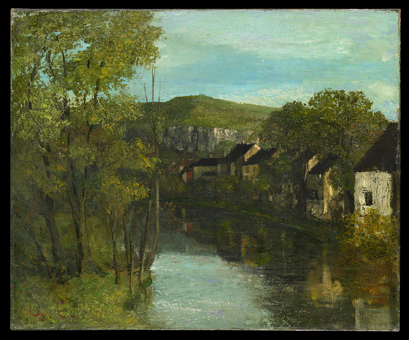Peint en 1872 par Gustave Courbet (1819-1877), le sujet de cette œuvre est une vue d’Ornans, sa ville natale, où le peintre revient régulièrement toute sa vie. La rivière, la Loue, qui occupe le centre de la toile, est entourée d’un paysage typique de la vallée et d’habitations ornanaises. En arrière-plan sont présentes les falaises calcaires, autre motif caractéristique des paysages de l’artiste pour les grottes et cavités qu’elles offrent.