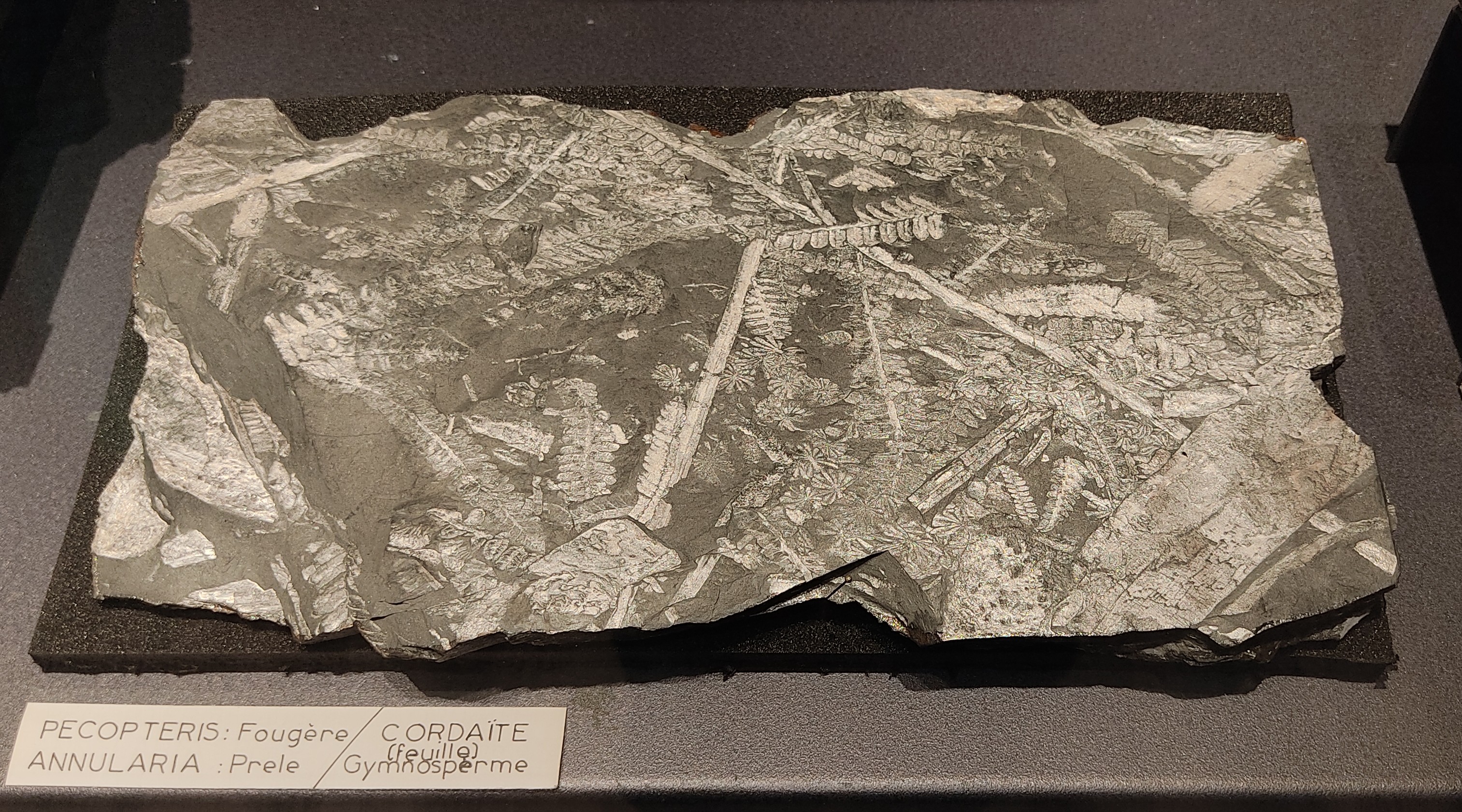 Pecopteris (fougère), Cordaïte (feuilles), Annularia (prêle)