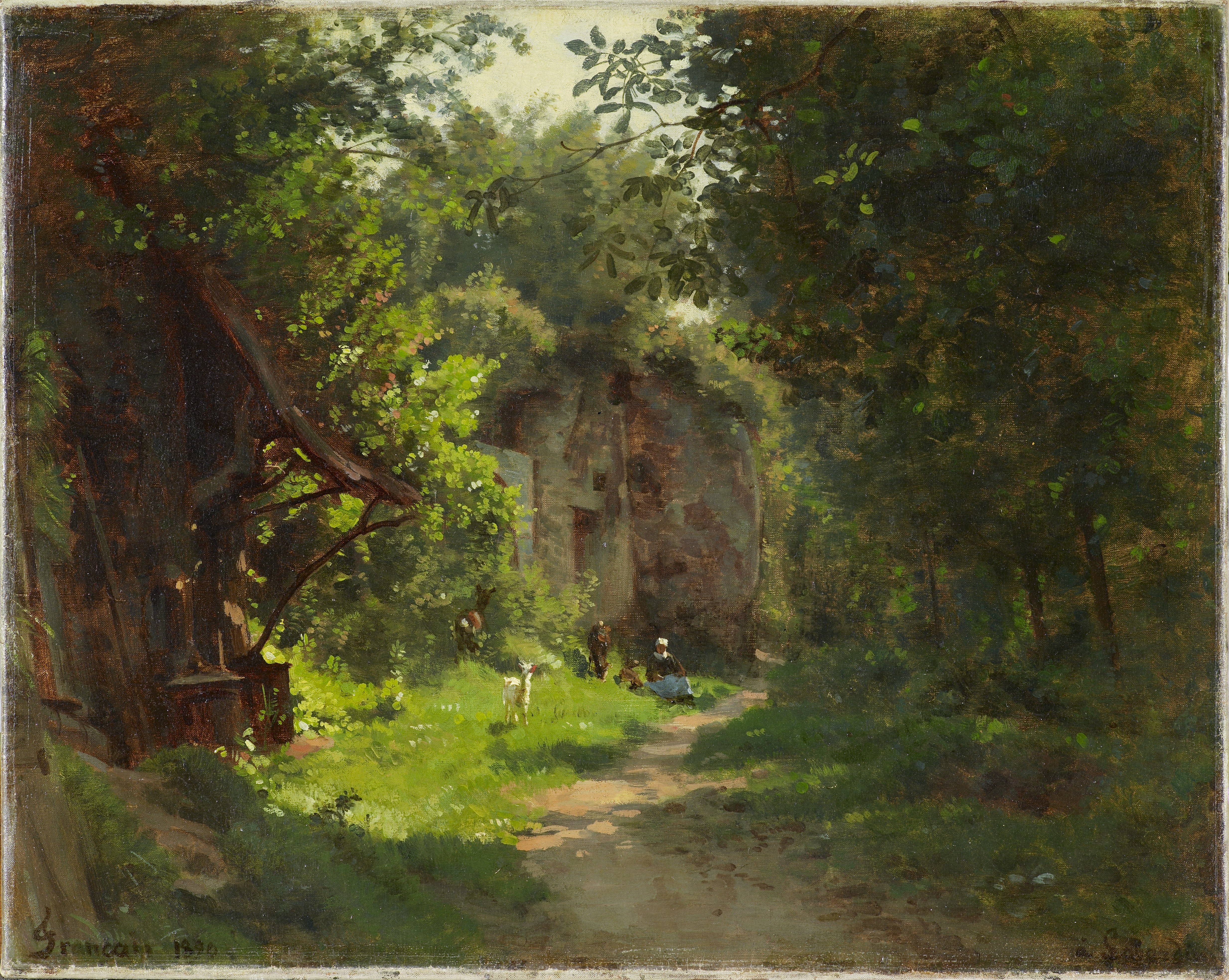 Ce motif de la grotte enfouie sous la végétation, qui plus est « habitée », séduit le peintre et nourrit son imaginaire : une hypothèse du milieu du XIXe siècle prêtait en effet à ces grottes un usage druidique, réfuté aujourd’hui.