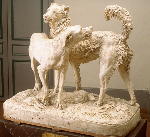 Cette statue a été réalisée par Mathilde THOMAS (Troyes, 1858-1949) en 1882, et donnée par l’État au musée de Semur-en-Auxois en 1886. L’œuvre est signée sur son socle « Mathilde THOMAS, 1882 ». Ce plâtre représente deux chiens de races différentes, dressés sur leurs pattes, dans une opposition qui traduit leur confrontation. Entre eux, au milieu de leurs pattes, se trouve le cadavre d’un lièvre.