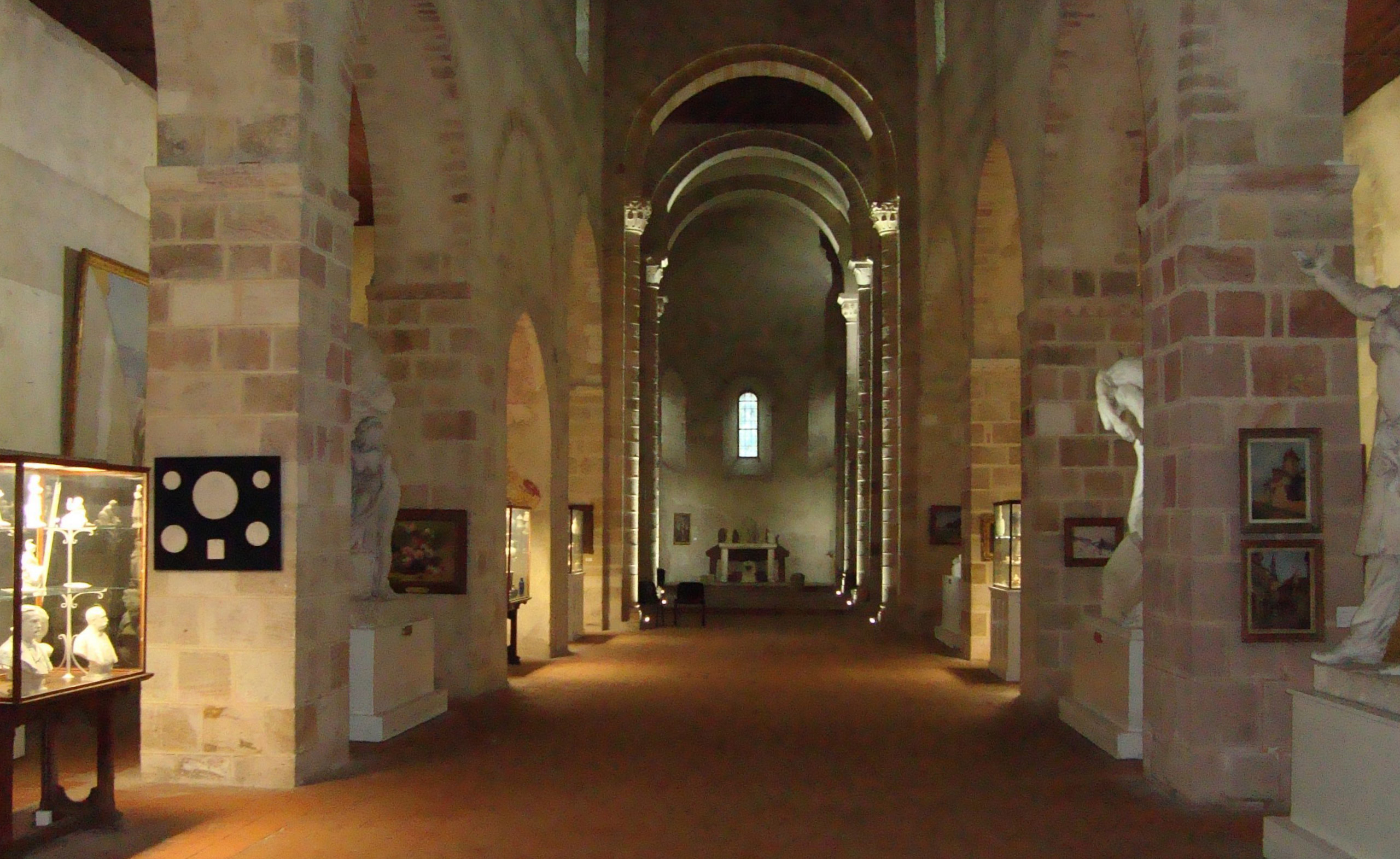 Dans l’église romane du XIe siècle, sont présentés poteries et figurines gallo-romaines, dont plusieurs objets provenant des fouilles de Bourbon-Lancy, porcelaines et biscuits de Sèvres, peintures (Puvis de Chavanne, Laronze, Lebourg, Merlette...), dépôt lapidaire médiéval, sarcophage du pèlerin de Compostelle et sculptures des XIXe et XXe siècles (Barrias Béguine).