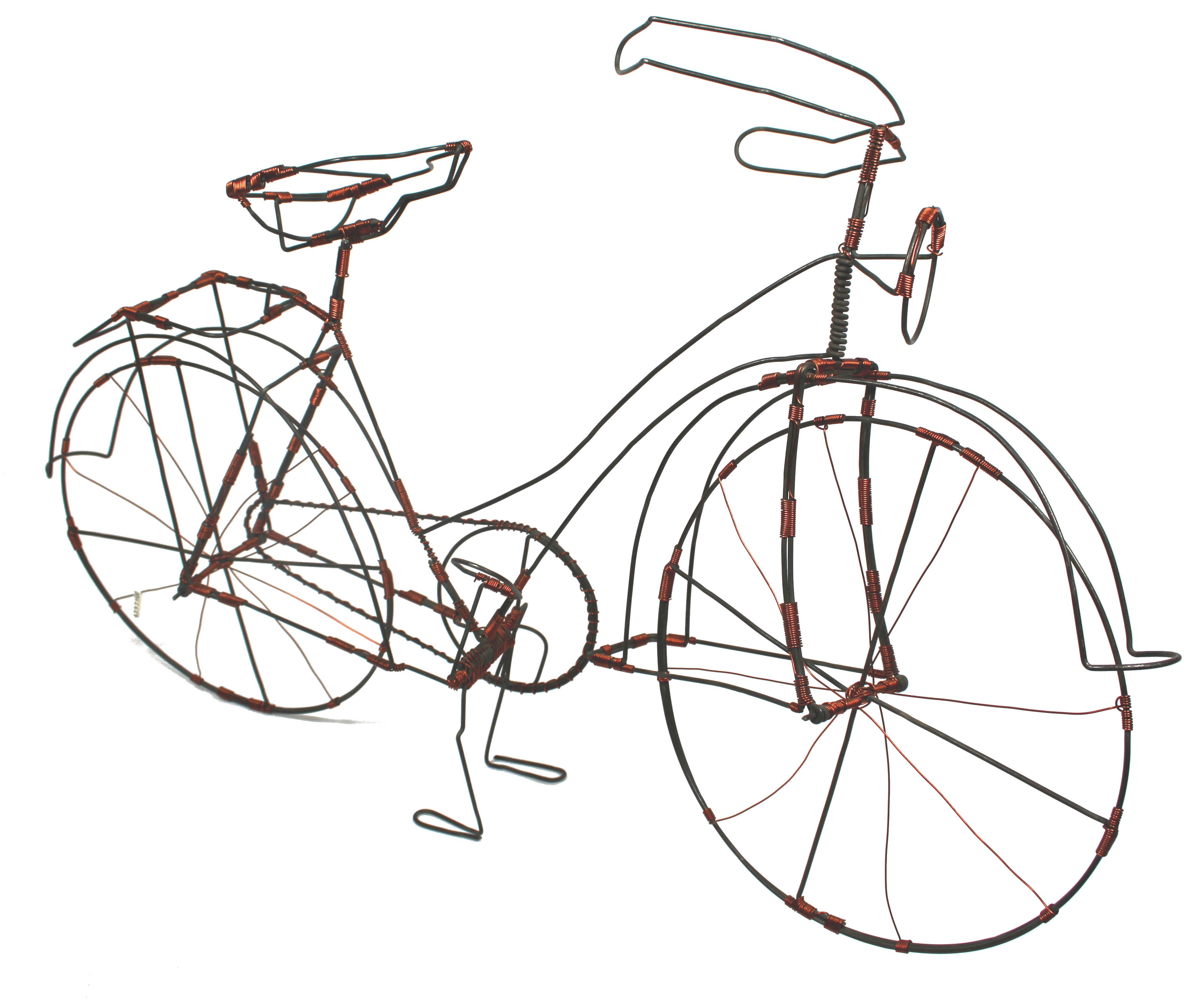 Cette bicyclette en fil de fer a été fabriquée en 1989 à Ndirande au Malawi par Douglas Kapito. Claude Ballaré, qui travaillait au centre culturel français de Blantyre, a alors acquis cet objet. Il rapport que Douglas Kapito, qui avait alors 23 ans, avait commencé cette pratique à l’âge de 10 ans et initiait son petit frère à ce travail de création d’engin en fils de fer et de cuivre. En 1995, ce petit vélo est acheté, avec 133 autres objets de la collection de Claude Ballaré, dans le cadre du Fonds régional d’acquisition pour les musées afin de compléter les collections musée du Jouet de Moirans-en-Montagne. Musée du Jouet, Moirans-en-Montagne
