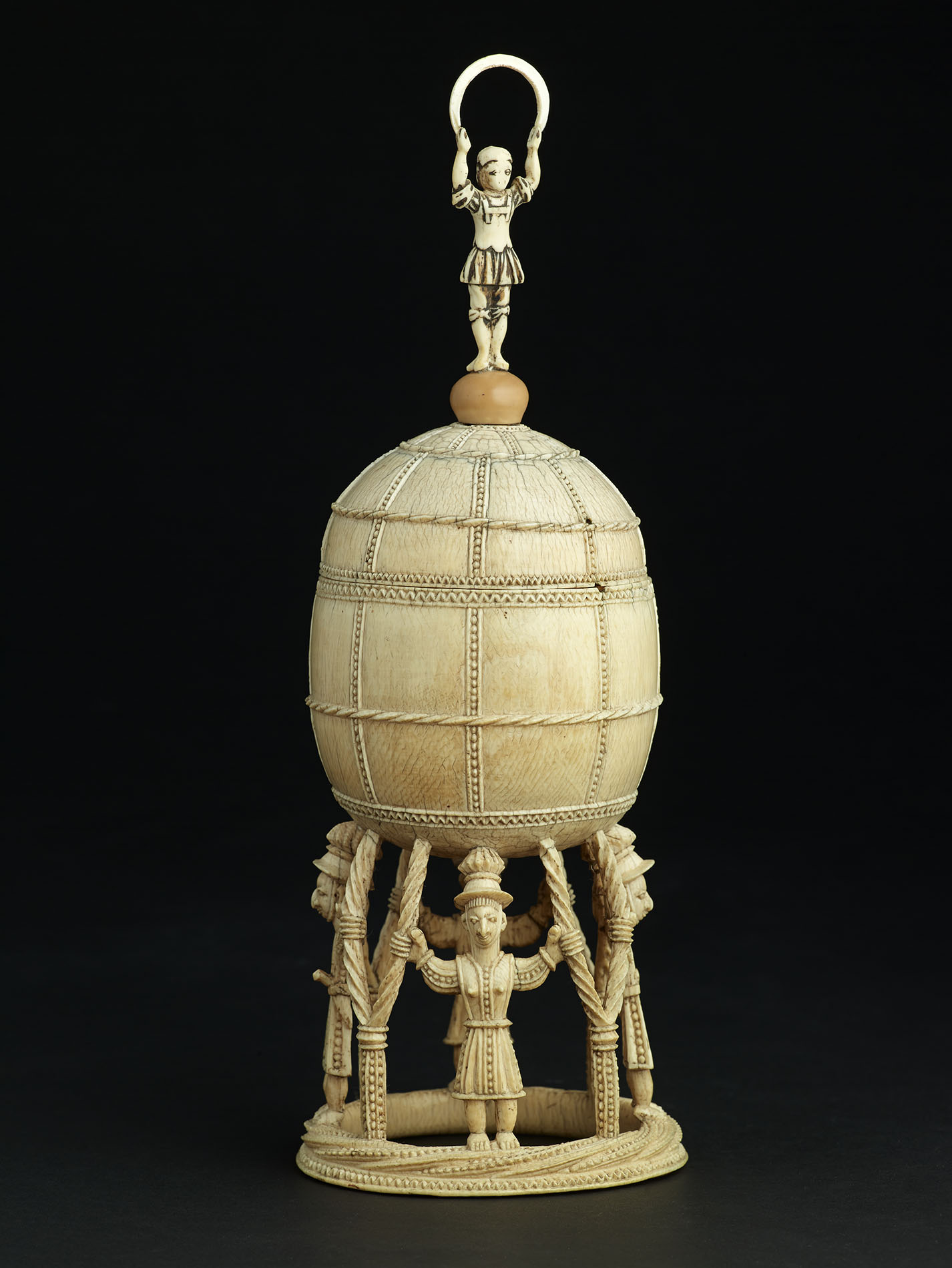 Dans le cadre de l’expansion portugaise le long des côtes de l’Afrique et l’établissement de comptoirs commerciaux, des objets en ivoire sont aussi fabriqués aux XVe et XVIe siècles sur les côtes du Golfe de Guinée. C’est dans une région désignée comme Serra Leoa par les navigateurs portugais, sur un territoire qui va aujourd’hui de la Guinée à la Sierra Leone qu’oeuvrent des artisans dits sapi, un terme parapluie qui recouvre plusieurs réalités. En grande partie produits pour l’exportation, ces objets se répandent dans les cours d’Europe dès le XVIe siècle. Le petit personnage au sommet de la boîte est ajouté en Europe au XVIIe siècle. Nous ne savons pas quel est ensuite son parcours avant qu’elle soit acquise par Henri, descendant de parlementaires dijonnais, et Sophie Grangier, entre 1871 et 1905, date à laquelle ils donnent leur collection au musée. Cette boîte à couvercle, sans doute utilisée comme salière, est tout d’abord qualifiée d’ « ancien travail oriental » dans le catalogue publié en 1917, avant d’être reconnu pour ce qu’elle est en 2008. À plus d’un siècle d’écart, ces collectionneurs, notables de la région, Jehannin de Champblanc comme les Grangier, partagent donc un intérêt pour les ouvrages en ivoire et c’est à ce titre qu’ils acquièrent ces objets dont ils ne connaissent pas l’origine. Musée des Beaux-Arts, Dijon