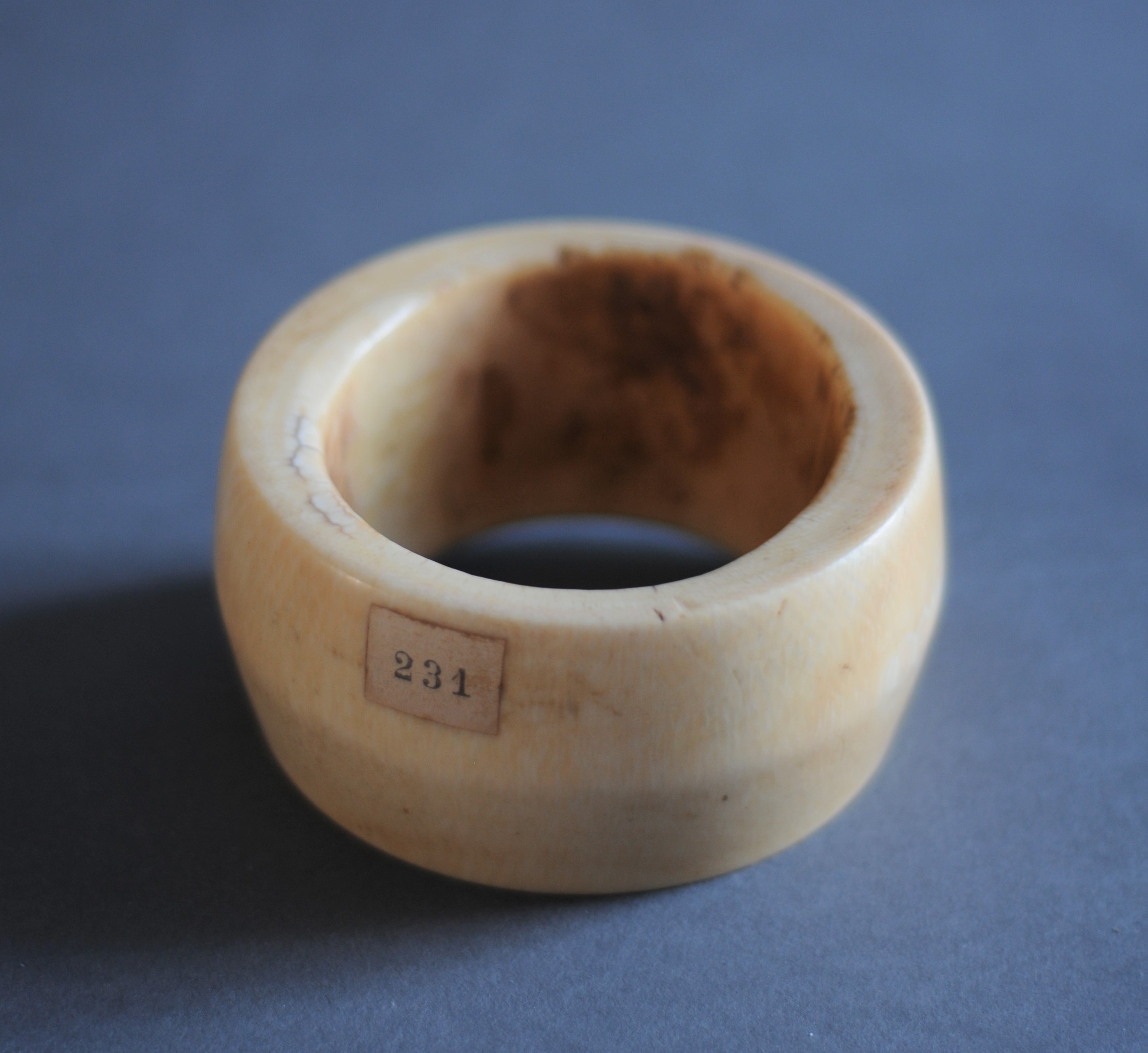En 1844, le legs d’un cabinet de curiosités au musée de Sens attire quelques donations d’objets du monde entier. En 1891, les catalogues du musée listent six objets provenant d’Afrique, dont ce bracelet en ivoire. Il aurait été offert à Henry Audon par le roi de Guummaa, l’un des États du Gibe, dans le bassin de l’Omo, formé dans la seconde moitié du XVIIIe siècle, et conquis en 1881, par les troupes de Ménélik, alors roi du Choa en pleine expansion et qui se fait couronner roi des rois d’Éthiopie en 1889. Audon fait partie de ceux qui lui vendent des armes. Au début de l’année 1886, le roi de Guummaa vient payer tribut à Ménélik : défenses d’éléphant, cornes remplies de musc, thalers, lingots d’or… Audon assiste à l’entrevue et visite ensuite le camp de la délégation du Guummaa qu’il prend en photo. Il lui achète aussi du tabac et quelques objets : pipes, ouvrages en bois tourné, poignards, lances et boucliers. Le bracelet, qui n’est pas mentionné dans le récit qu’a publié Audon de ces évenéments, a-t-il été reçu ou acquis à un autre moment ? C’est par ailleurs le seul des objets alors rapportés d’Éthiopie qui entrent au musée. Musée municipal, Sens