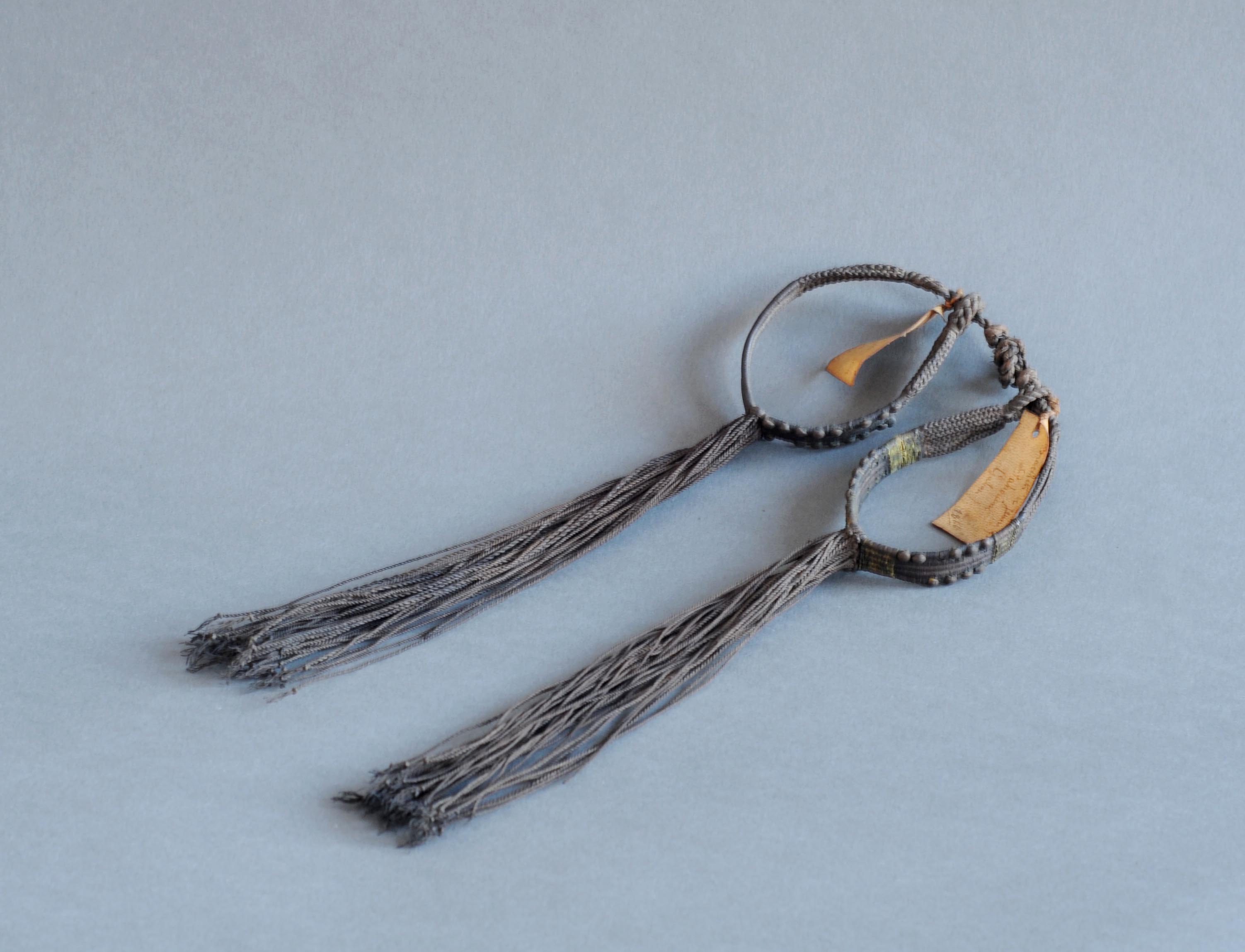D’après la documentation du musée de Sens, Gustave Méry acquiert en 1866 cet objet tressé, orné de franges et de fines perles de bois, sans doute lors d’une expédition dans la région de l’estuaire du Gabon. Il reste plusieurs années dans sa collection personnelle jusqu’à son entrée au musée de Sens en 1914. L’objet est alors étiqueté : « bracelets de jeune fille pahouine », reprenant la terminologie utilisée au XIXe siècle pour désigner les populations fang du nord-ouest de l’actuel Gabon. L’identité de ce Gustave Méry est encore incertaine, toutefois des sources nous mettent sur la piste soit d’un médecin militaire soit d’un officier de marine. Si c’est bien en 1866 qu’il acquiert cet objet, avec toute une série de même provenance, il faut noter que cela précède de près de dix ans l’expansion de l’administration coloniale dans cette région de l’Afrique, et les collections importantes qui en sont issues. Dans ce cas-là, Gustave Méry serait à l’origine de l’un des plus anciens ensemble d’objets fang conservés dans les collections publiques. Musée municipal, Sens