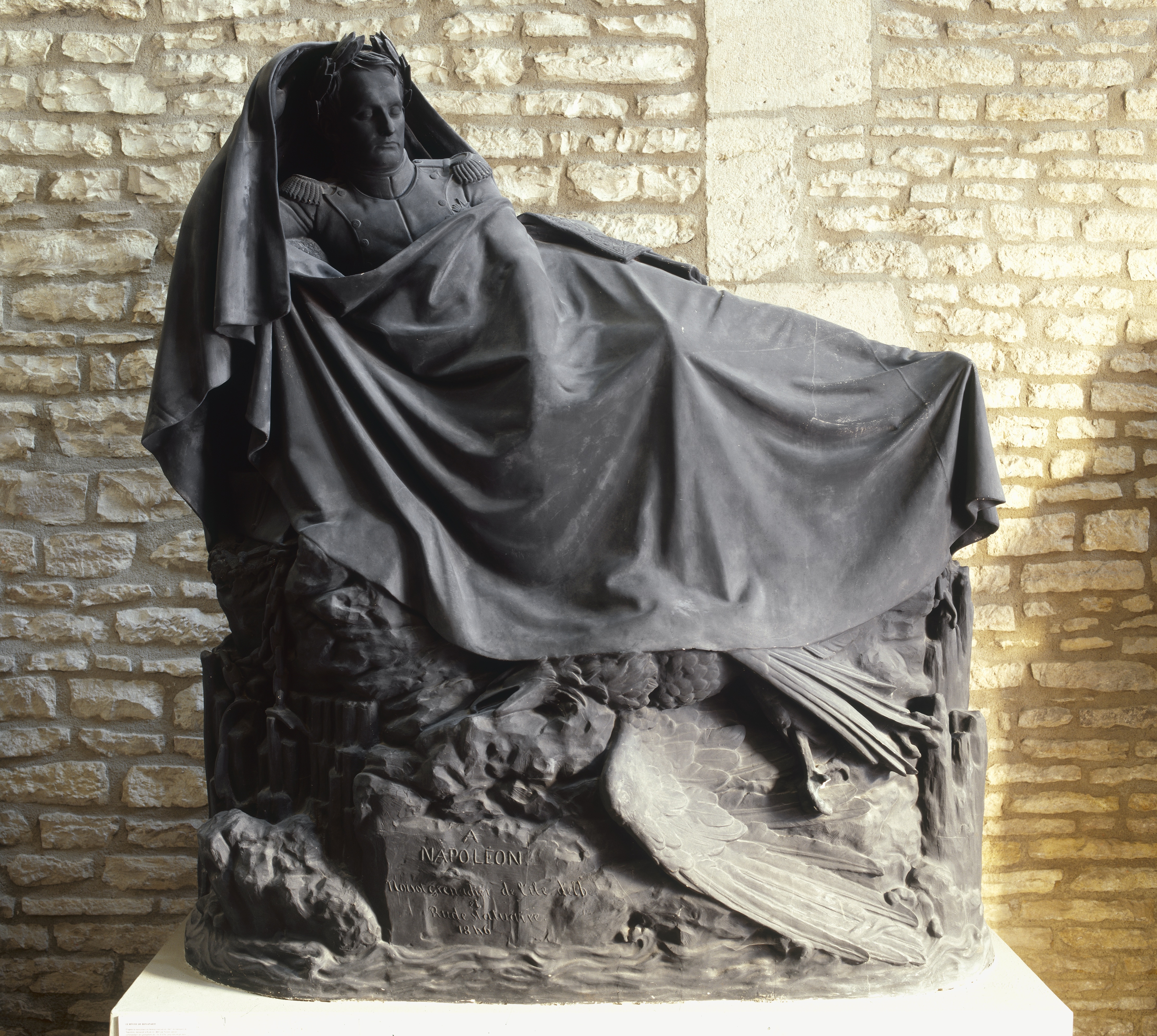 Napoléon s’éveillant à l’Immortalité d’après François Rude, mouleur Emile MarchonFrançois Rude sculpte cette effigie de l’Empereur sous la commande de Claude Noisot ancien soldat de la Grande Armée de Napoléon. Celui-ci souhaite en effet décorer le parc de son petit musée consacré à Napoléon implanté sur sa propriété de la commune de Fixin (21). Napoléon est représenté en résurrection, soulevant son linceul, face à l’immortalité, bien loin des iconographies habituelles liées à sa mort sur l’île de Sainte-Hélène. L’île est représentée sous la forme d’un rocher, et l’Aigle symbolisant l’Empire déchu est représenté mort, le bec ouvert. Le bronze original est toujours en place à Fixin, et le musée Rude de Dijon expose une copie en plâtre. Musée Rude Napoléon s’éveillant à l’Immortalité d’après François Rude, mouleur Emile Marchon