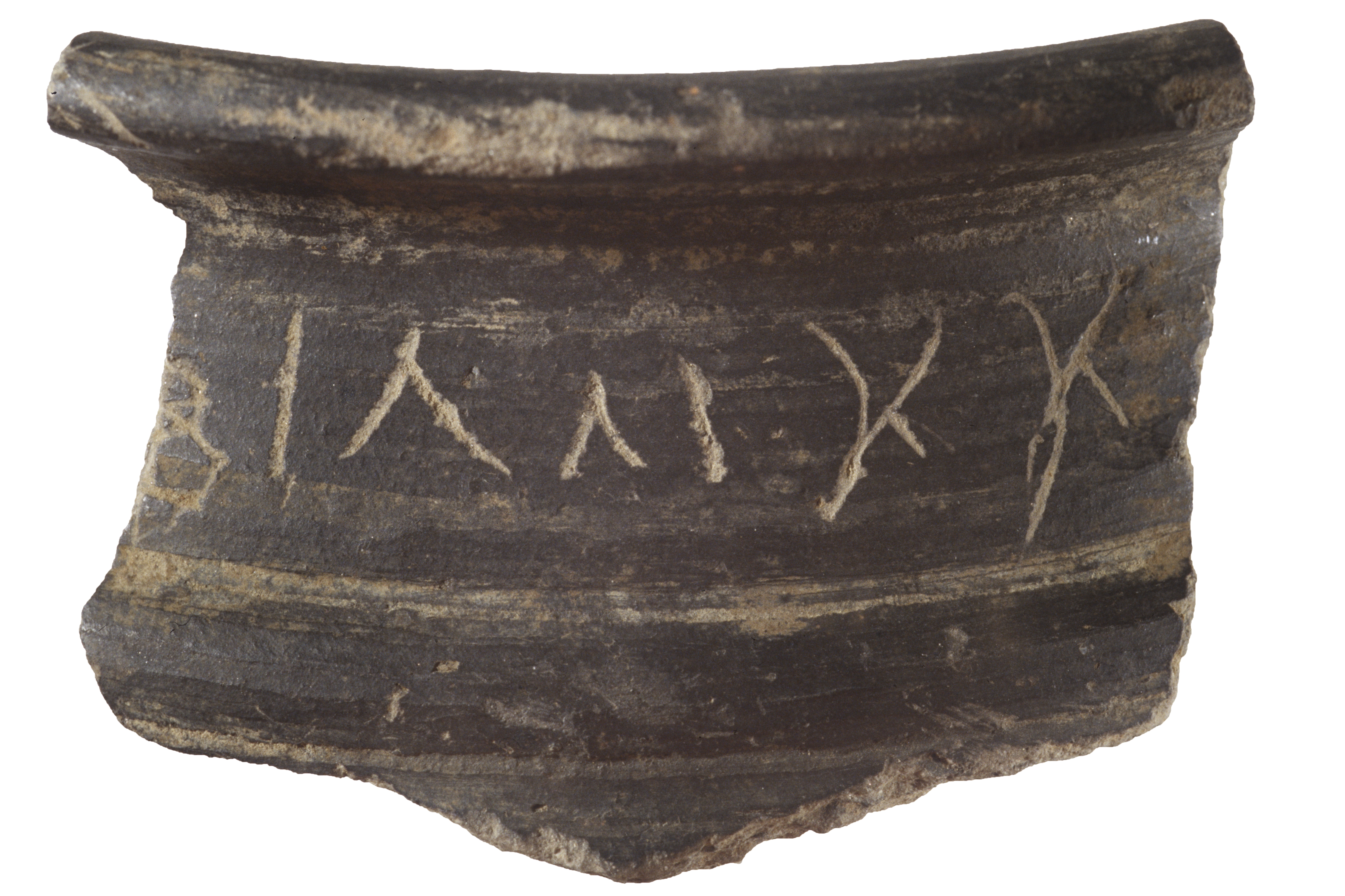 Graffite gauloisTracés au moyen d’une pointe dure à la surface de modestes pots en céramique, les inscriptions de ce type forment un témoignage exceptionnel et émouvant des habitants de l’antique Bibracte. Les fouilles de la capitale éduenne ont livré l’une des plus importantes collections de graffites gaulois qui démontrent, à l’encontre des idées reçues, l’usage assez largement partagé au sein de la population éduenne de l’écriture, au Ier siècle avant notre ère. L’alphabet le plus souvent utilisé est le grec, qui n’est supplanté par le latin qu’à la toute fin du Ier siècle avant notre ère. Cette collection révèle aussi quelques dizaines de noms de personnes, en langue gauloise, qui viennent compléter les noms de notables conservés dans le récit de César. Certains sont construits à partir de noms communs et évoquent des caractéristiques physiques, comme beaucoup de noms de famille d’aujourd’hui : Donnias et Roudios sont l’équivalent de nos Lebrun et Leroux par exemple. D’autres évoquent des qualités humaines : on lit sur l’exemple choisi « BILLIKK » pour « BILLICC(ATOS) », un adjectif qui signifie « bon ». Musée de Bibracte Graffite gaulois