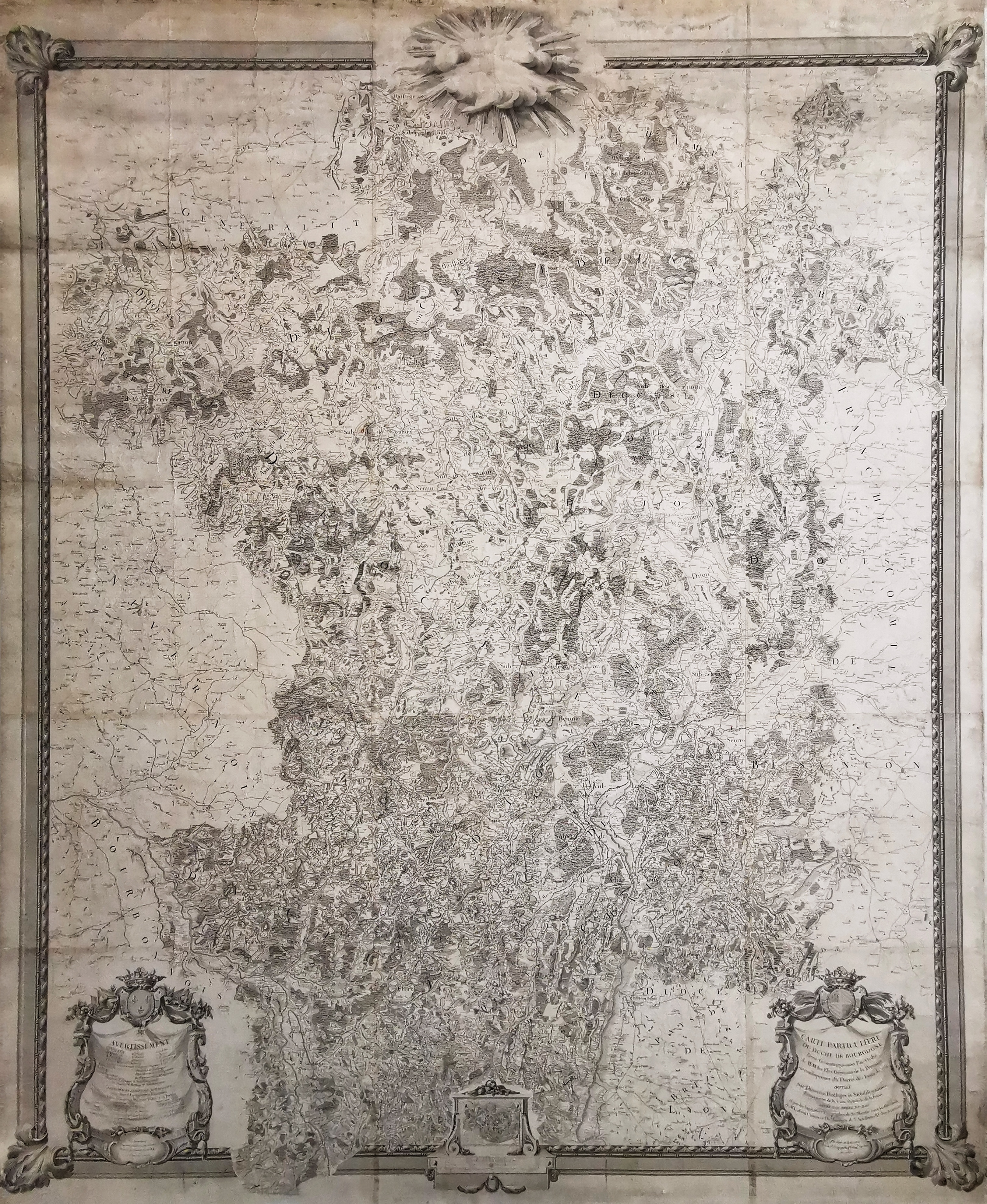 Carte du Duché de Bourgogne dite de Cassini et gravée par SeguinRéalisée par la famille d’astronomes et cartographes Cassini durant la seconde moitié du XVIIIe siècle, cette carte constituait une véritable innovation et une avancée technique décisive pour l’époque, s’appuyant sur la triangulation géométrique. Il s’agit de la première carte topographique et géométrique réalisée à l’échelle du Royaume de France et qui sera déclinée par territoires, à l’instar du Duché de Bourgogne. Elle avait pour fonction de mesurer les distances et assurer le positionnement exact des lieux, déterminer le nombre de bourgs, villes et villages et de présenter ce qui était immuable dans le paysage. Les feuillets sont consultés fréquemment pour la précision du tracé du réseau routier, notamment par les historiens, généalogistes, géographes et écologues. Musée Buffon Carte du Duché de Bourgogne dite de Cassini et gravée par Seguin