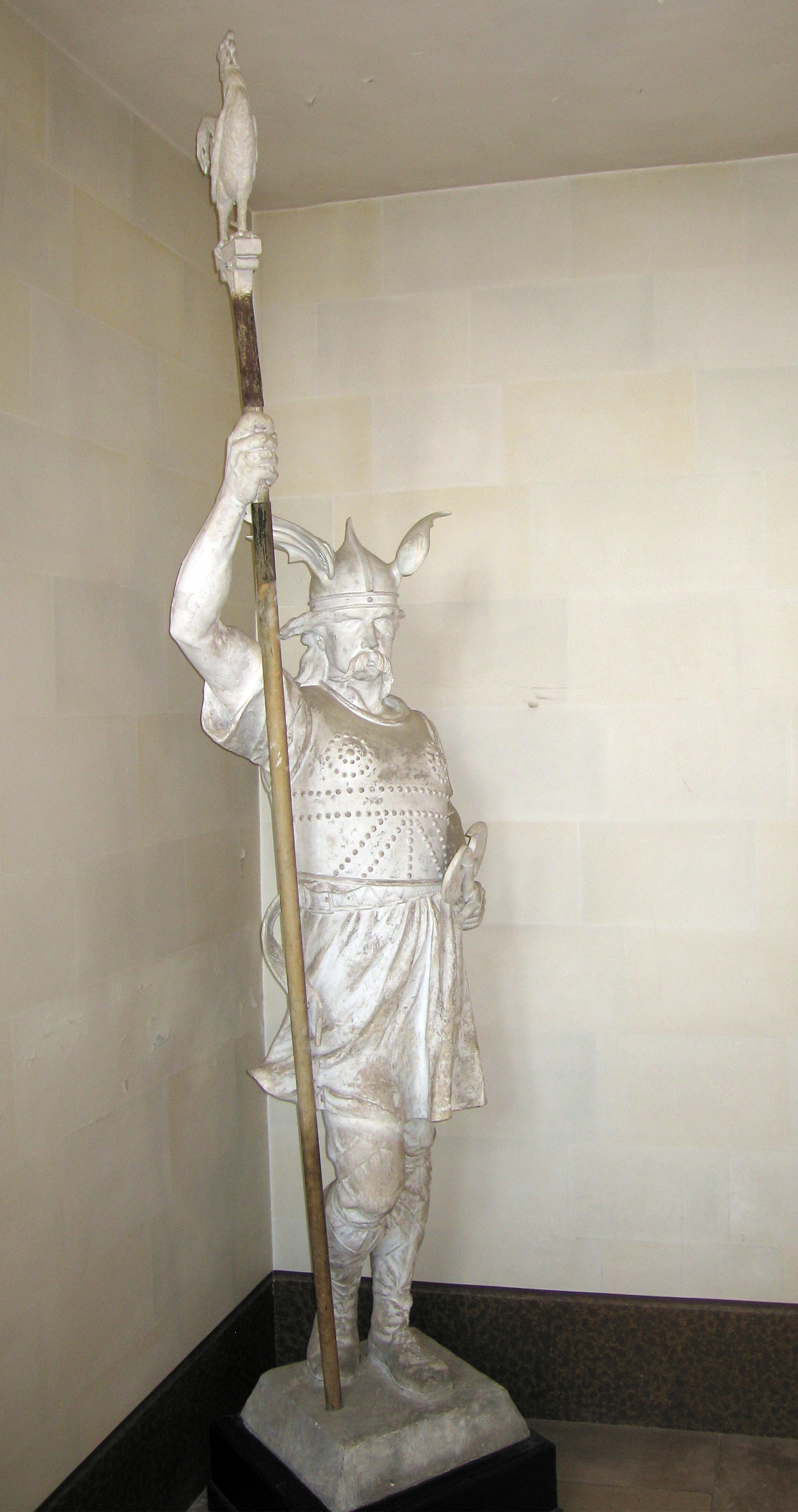 Gaulois Anatole GuillotTu sais que tu es en Bourgogne Franche-Comté quand dans ton musée il y a… … Une statue en plâtre d’un Gaulois de 4 m de haut. Ce Gaulois sculpté par Anatole Guillot (1865-1911), est en réalité le modèle de la statue de cuivre martelé et doré qui surmonte la façade de l’hôtel de ville de Sens depuis 1904. Ce gaulois porte une cuirasse semblable à celle de Vercingétorix de Bartholdi, un casque à crête à ailes assez hautes. Ses braies sont enserrées dans des lanières. Il tient dans sa main gauche une insolite hache bipenne et dans la main droite la hampe d’une haute enseigne surmontée d’un coq. Musée de Sens Gaulois Anatole Guillot