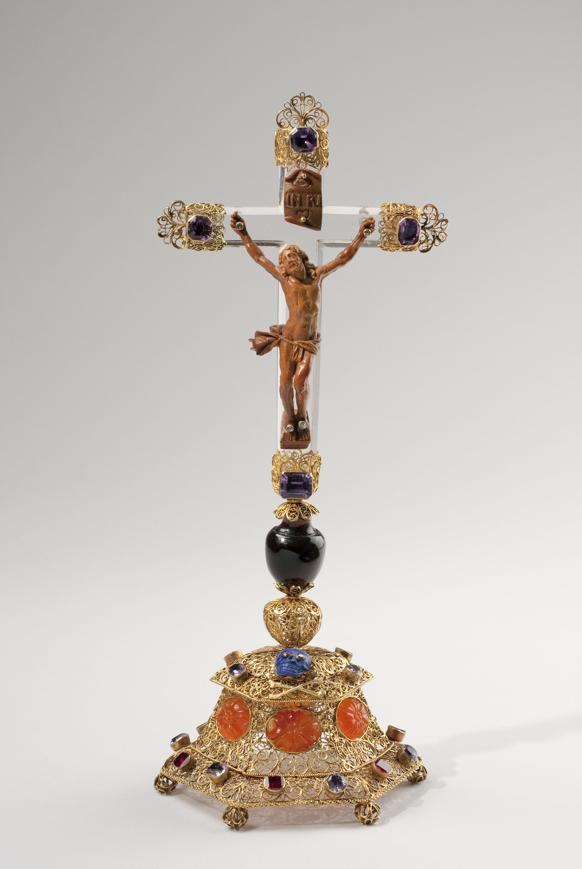 Croix de Christine de SuèdeDepuis 2010, le musée d’art sacré de Dijon expose une pièce remarquable du XVIIe siècle, déposée par le Centre Hospitalier où elle était conservée depuis le XIXe siècle, la croix dite de Christine de Suède. Cet objet est remarquable à plus d’un titre : la qualité de son exécution, la préciosité et la richesse des ornements en font un objet d’art exceptionnel, auréolé d’une provenance royale puisqu’il aurait été donné par la reine Christine de Suède à un dignitaire dijonnais, lors de son passage dans la capitale des États de Bourgogne en 1656, en remerciement de l’accueil fastueux reçu. En effet, à la demande du roi de France qui sollicite un accueil royal et l’organisation d’une entrée solennelle pour la reine, les habitants de Dijon reçoivent Christine en grande pompe, déployant décors urbains et tapisseries, et ordonnant aux habitants non seulement de nettoyer devant leurs habitations, mais aussi de former une haie d’honneur, sous réserve d’amendes. Musée d’art sacré Croix de Christine de Suède