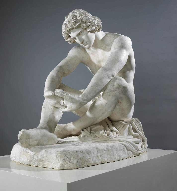 Le Désespoir Jean-Joseph PerraudLe sculpteur majeur de la collection de Lons-le-Saunier, Jean-Joseph Perraud, traite ici d’un sujet universel, le chagrin d’amour. La genèse de cette œuvre a été relatée par Louis Pasteur, ami de l’artiste : en proie à une insomnie, assis dans son lit, l’artiste réalise que sa position traduit le profond désespoir qu’il ressent. Pour exécuter son œuvre, il s’éloigne des postures rigides du style hiératique néo-classique qui le caractérise pour s’intéresser à une expression plus libre du sentiment. La présentation de ce plâtre au Salon de 1861 consacre son auteur déjà célèbre grâce à son Bacchus. L’œuvre en marbre commandée par l’État et présentée avec succès au Salon de 1869 est exposée aujourd’hui dans le grand hall du musée d’Orsay. Musées de Lons-le-Saunier Le Désespoir Jean-Joseph Perraud