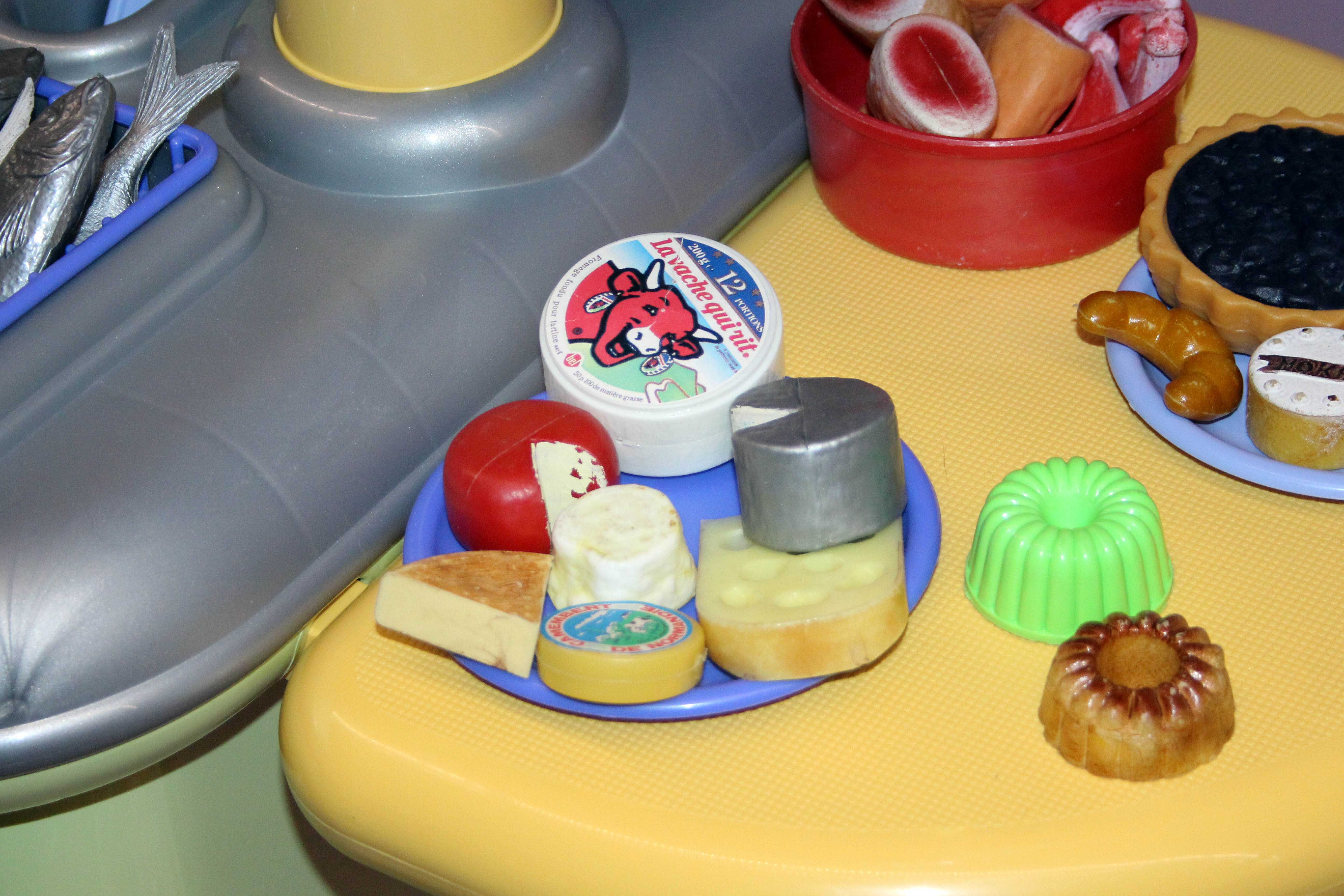 Plateau de fromage miniatureLe fromage est un élément important de la gastronomie franc-comtoise. Sachant bien que les enfants aiment imiter le monde des adultes, les fabricants de jouets jurassiens n’oublient jamais le plateau de fromage dans leurs dînettes. On y retrouve souvent le comté et bien sûr la Vache qui Rit. Musée du jouet Plateau de fromage miniature